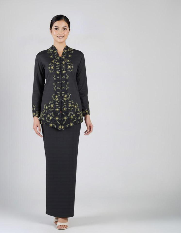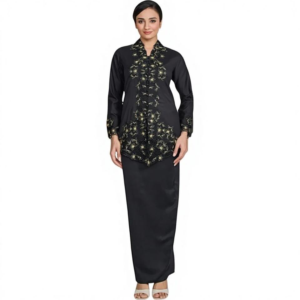 Kilang OEM Custom Casual Modern Kebaya Gold Embellishment Breathable Knitted Fabric-Private Label Production for Muslim Women