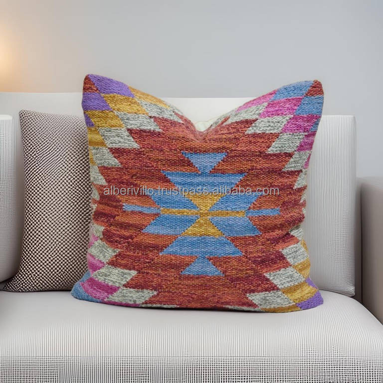 Kilim Cushion Cover Handmade Cushion Cover for Home Decoration Moroccan Wool Artisan Cushion Cover From Indian Supplier
