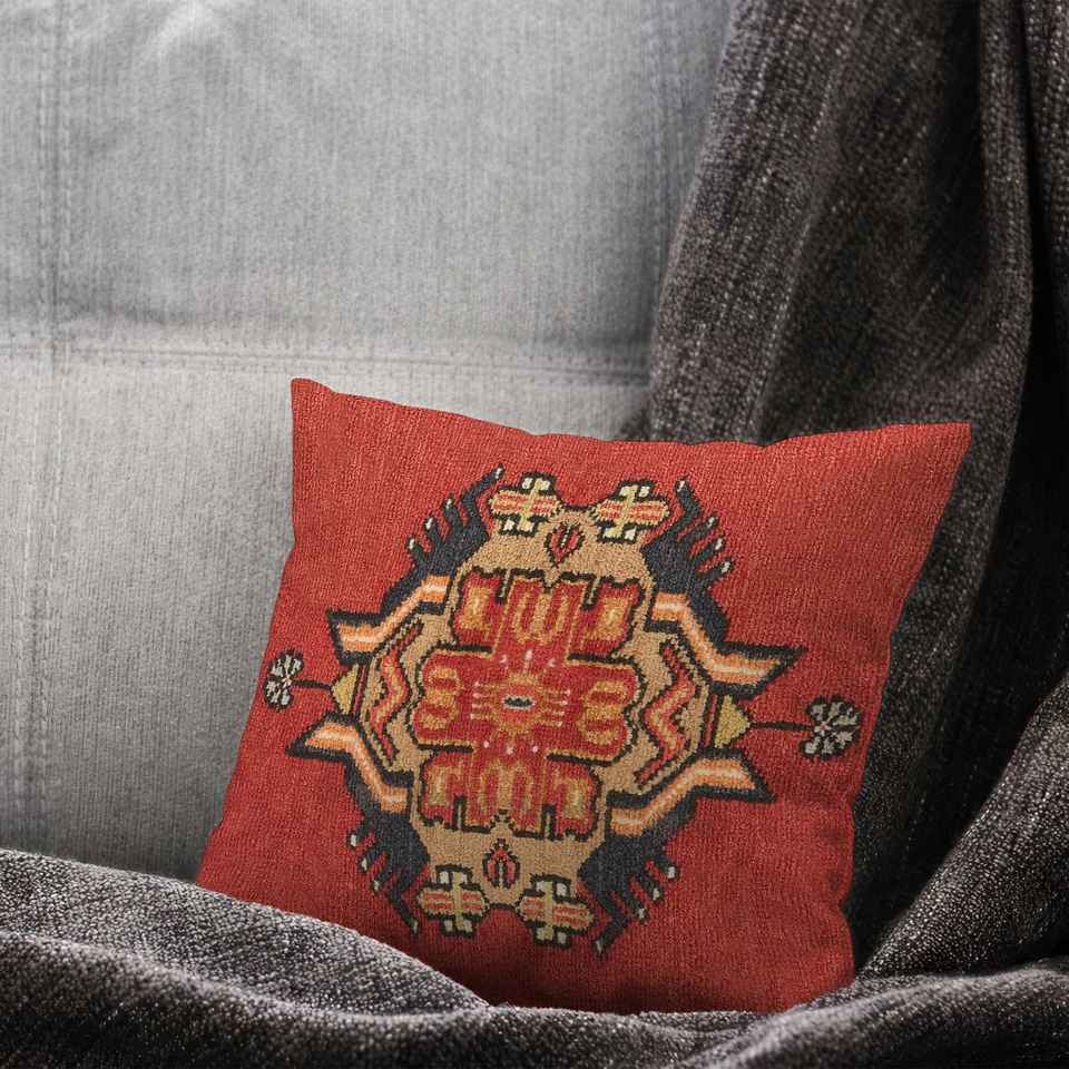 Kilim Design Printed Pillow - Vintage Turkish Cushion,Cover+Insert