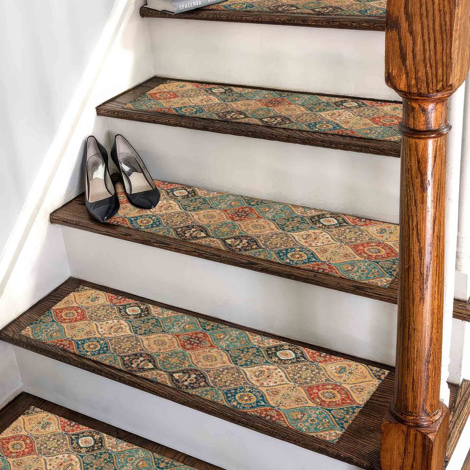 Kilim Design Printed Rug: Soft Tones, Ethnic Step, Machine Washable,Step Rug