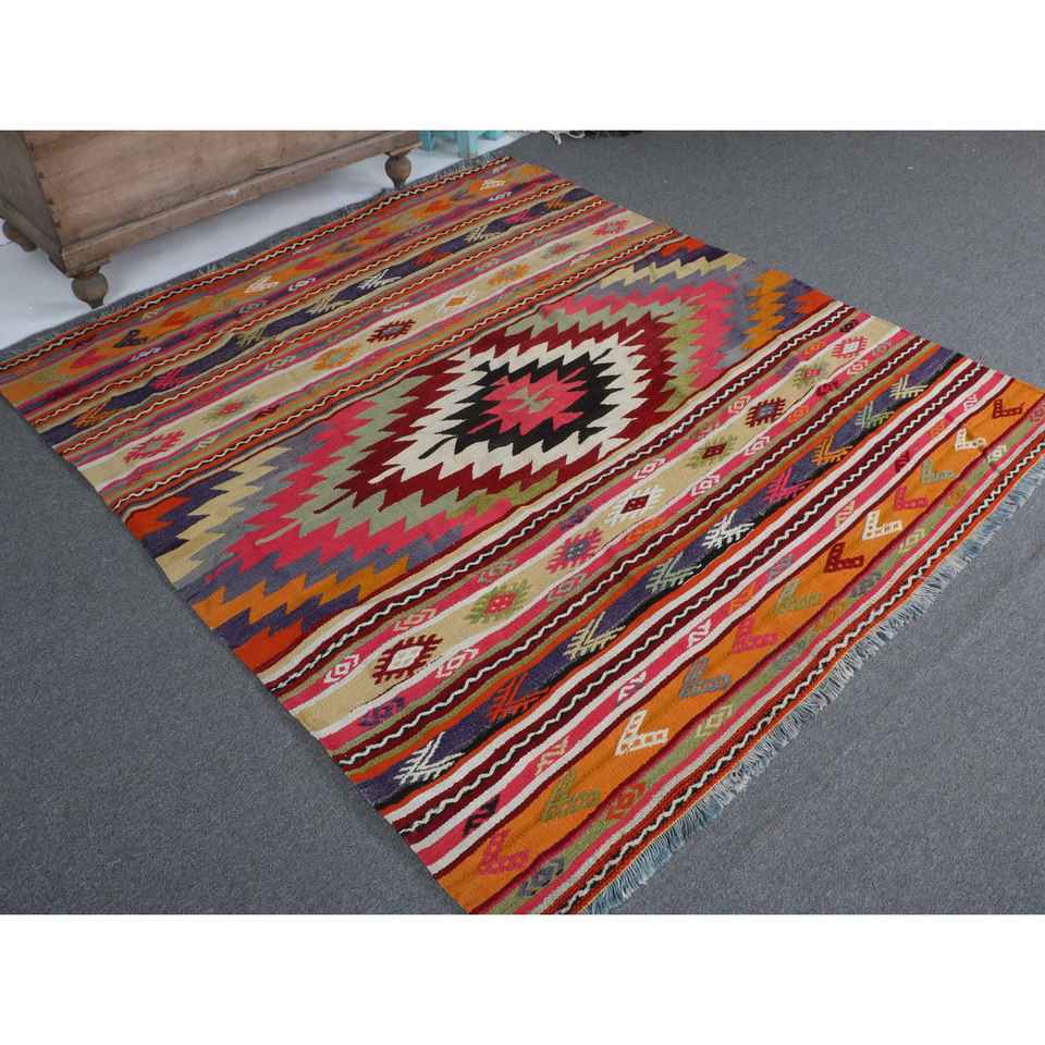 Kilim Rug, 5.3x5.9 ft Vintage Rug, Red Striped Rug Wool