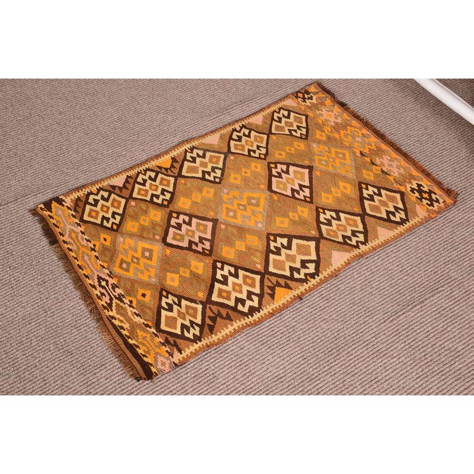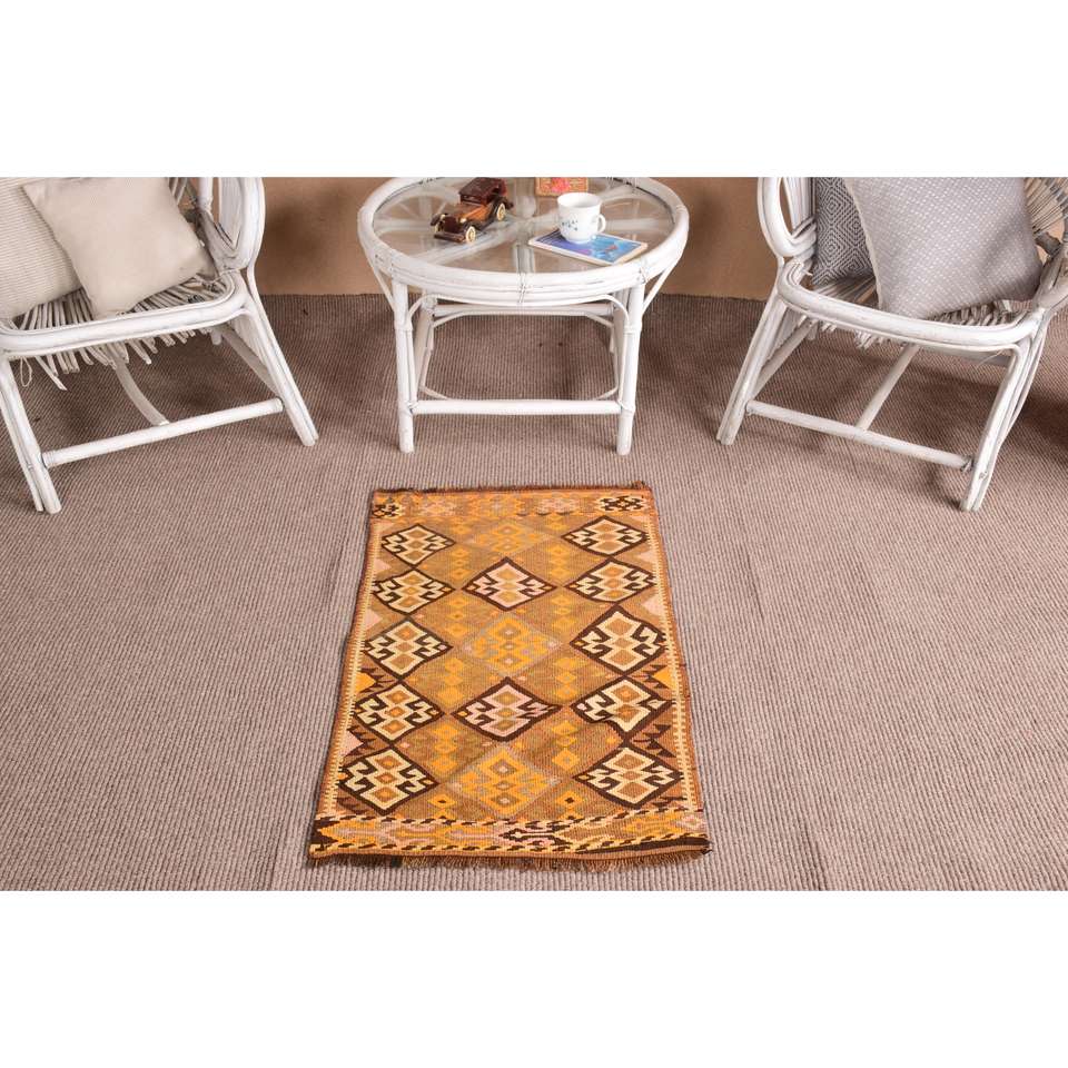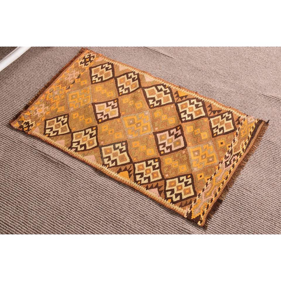 Kilim Turkish Rug, 1.9x3.1 ft Vintage Rug, Brown Polka dot Wool Rug