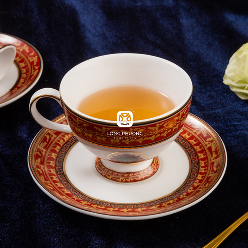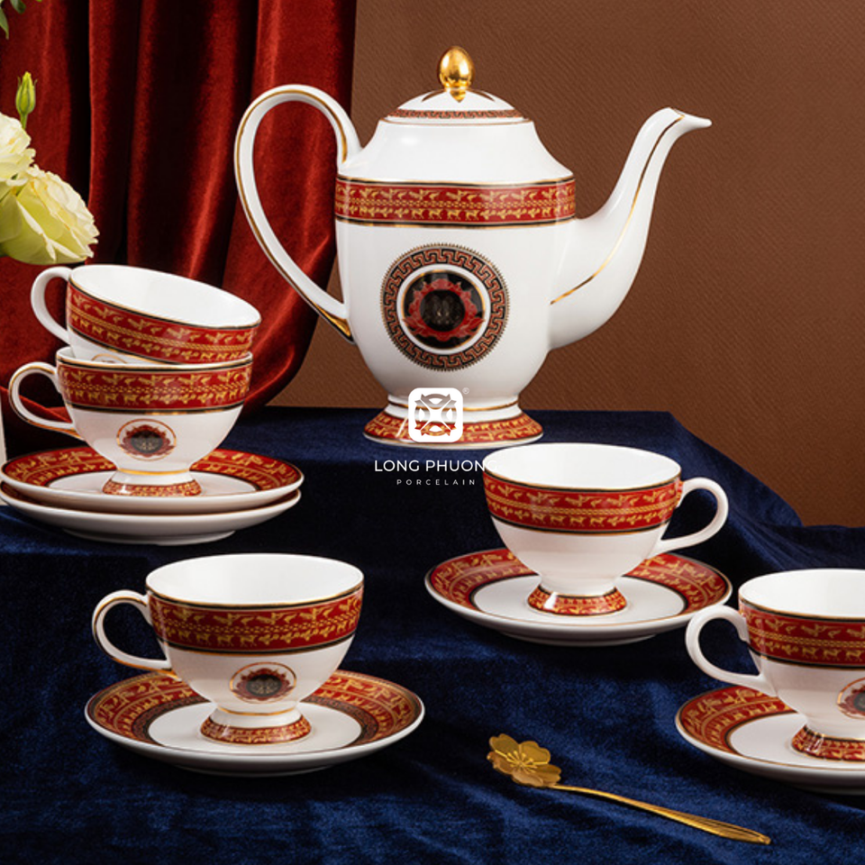 Kim Lai Luxury Ceramic Tea Set 500ml Gold Plated Porcelain Teapot Cups Modern Minimalist Gift Set Wholesale Custom Embossed