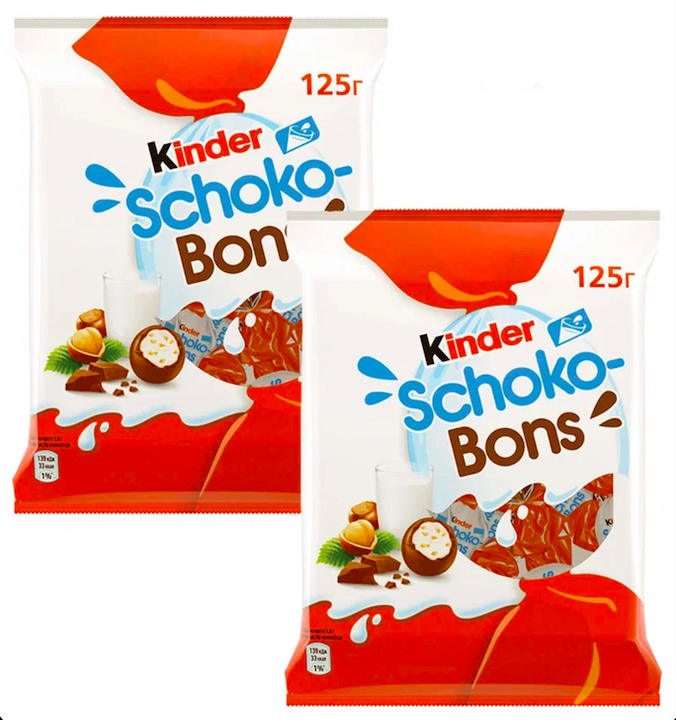 Kin-der Schoko Bons White Chocolate Biscuit Cream Milk Hazelnut Pieces & Fruit Filled Balls Liquid Form Candy