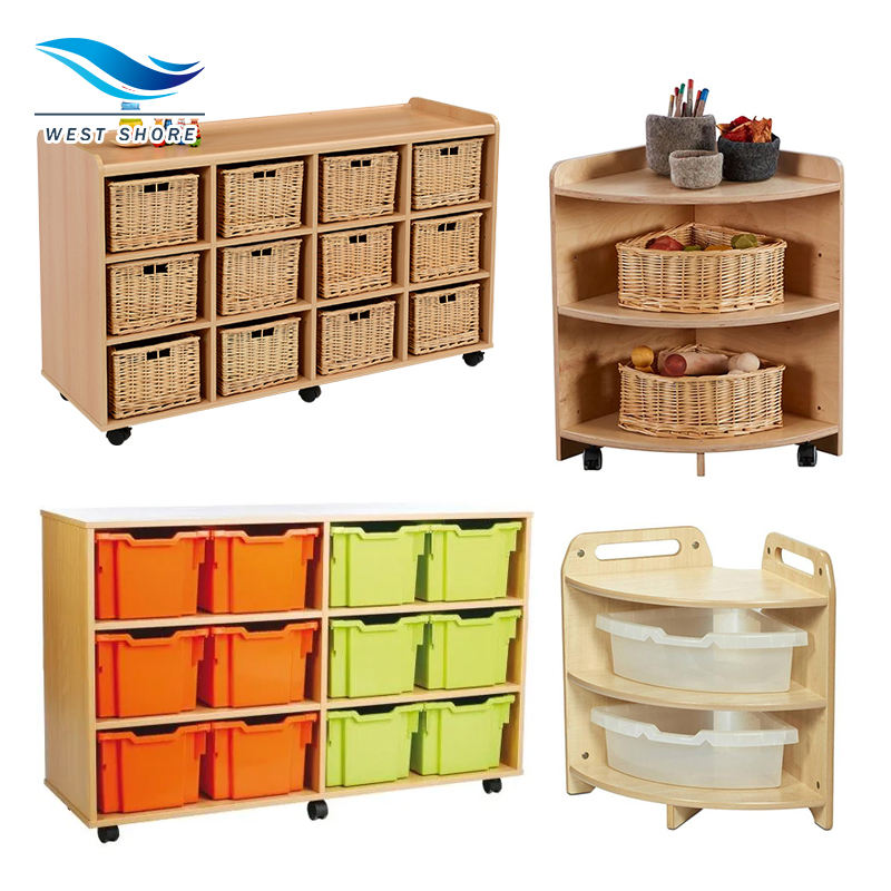 Kindergarten Children Preschool Classroom Storage Cabinets Furniture for Childcare Kids Toys Storage Bookshelf Birch Plywood