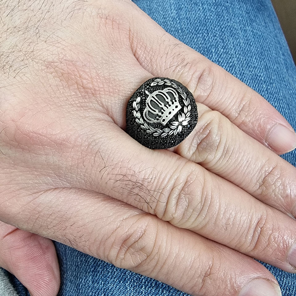 King Crown Black Zircon Men Ring 925 Silver Jewelry Wholesale Silver Ring for Men Art Design Elegant Trendy Fine Jewelry Rings