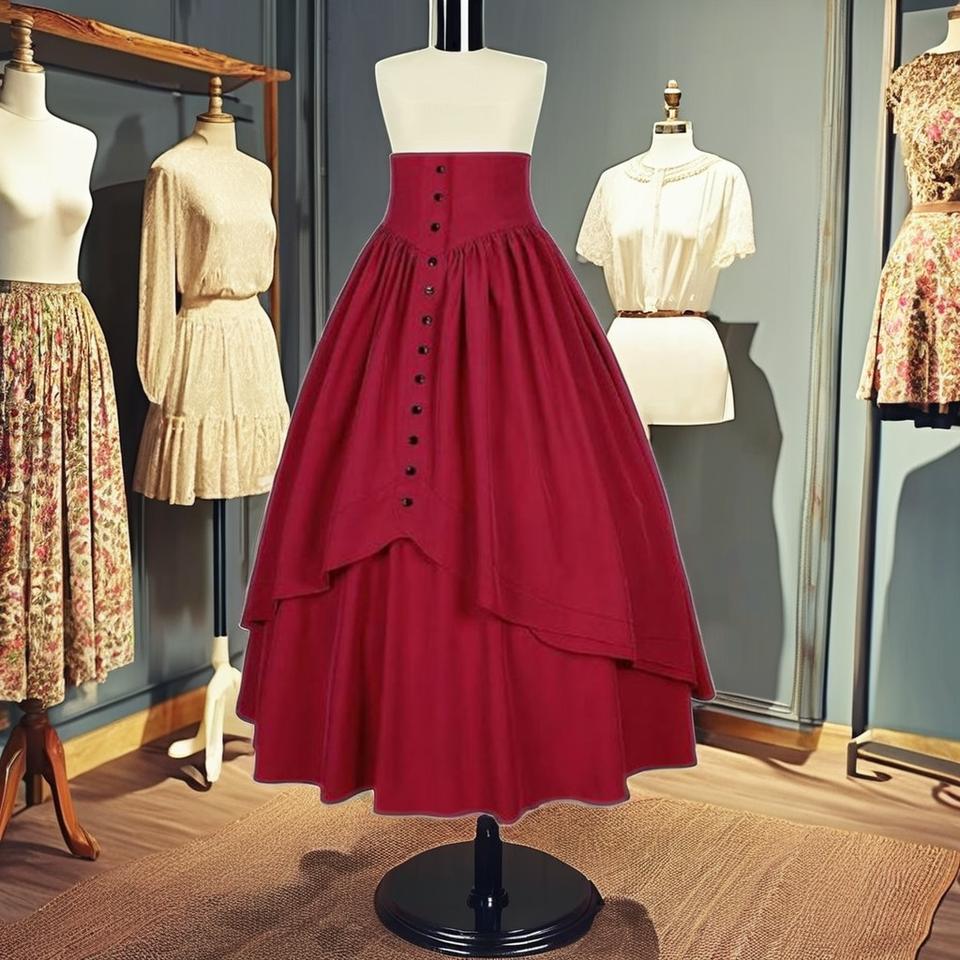 King Mcgreen Star Vintage Medieval Skirts Retro Receive Waist Elegant Temperament Layered Ruched High Waist Ruffle Swing Skirt