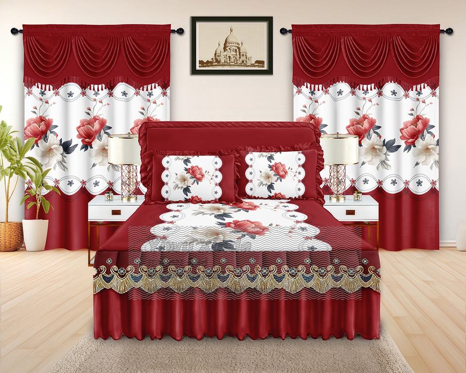 Keywords:5pieces bedspread bed skirt bedding set with curtains