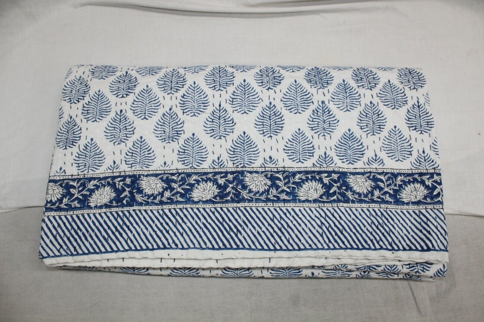 King Size Luxury Blue Kantha Cotton Quilt Bedspread with Floral Print for Bedding Decoration on Sale at Low Prices