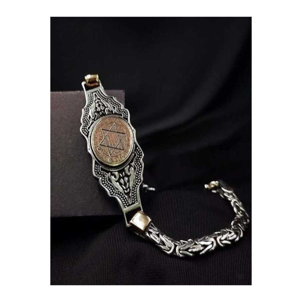 King Solomon's Seal Engraved Silver Bracelet, 925 Sterling Silver, 18.23 gr