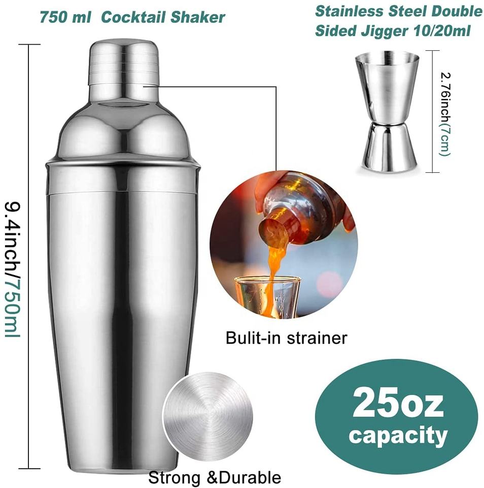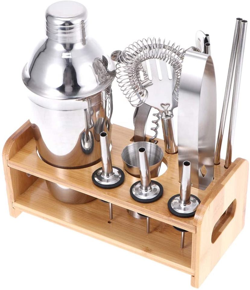 King International Professional Bar Ware Tools Wooden Stand Bag Travel Gift Stainless Steel Bartender Kit Bar Accessories