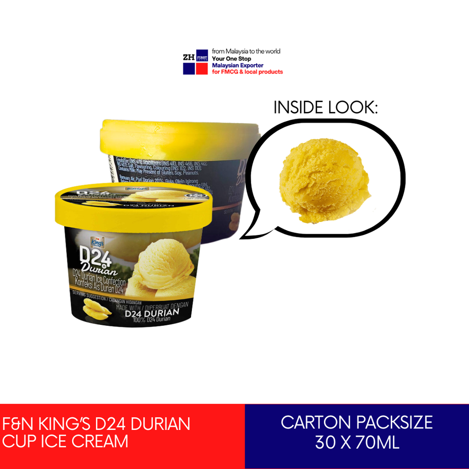 King's D24 Durian 70ml small yellow cup impulse ice cream 100% D24 durian authentic halal F&N Malaysia direct factory wholesale