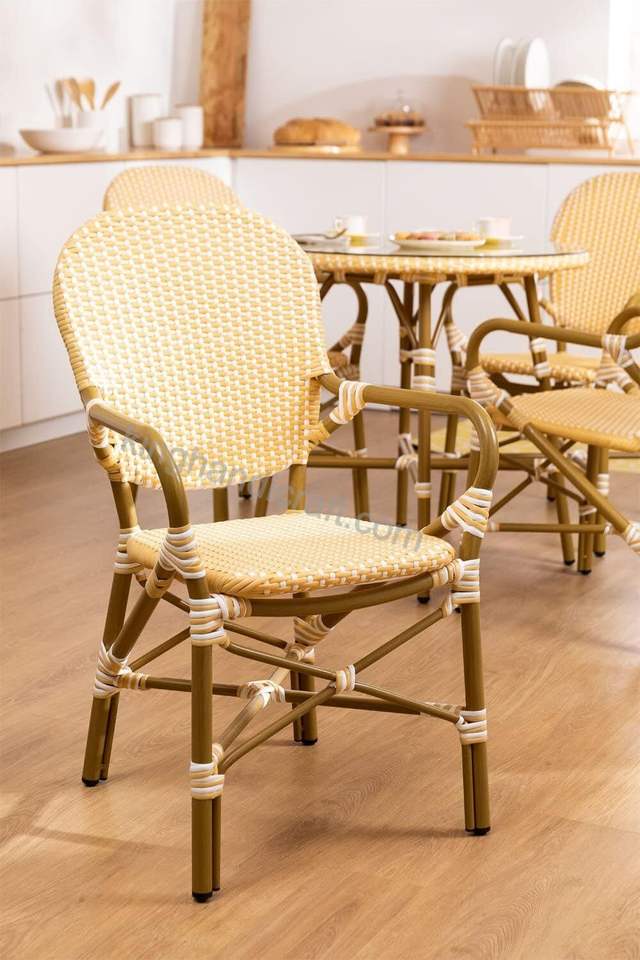 Kinghandicraft Boho Style Synthetic wicker dining chair Alisa Bistro Vanilla Yellow Color Wholesale Price