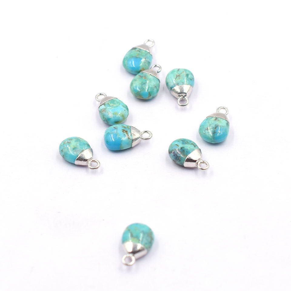 Kingman Block Turquoise 11 To 13 MM With Bail Drop Shape Silver Plated Pendant Gemstone Findings December Birthstone