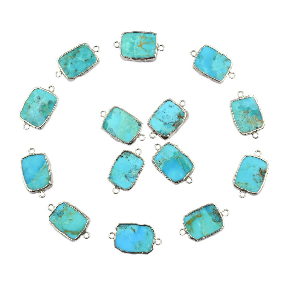Kingman Block Turquoise 20 To 22 MM Rectangle Shape Silver Plated Connector With Bail For Jewellery Making
