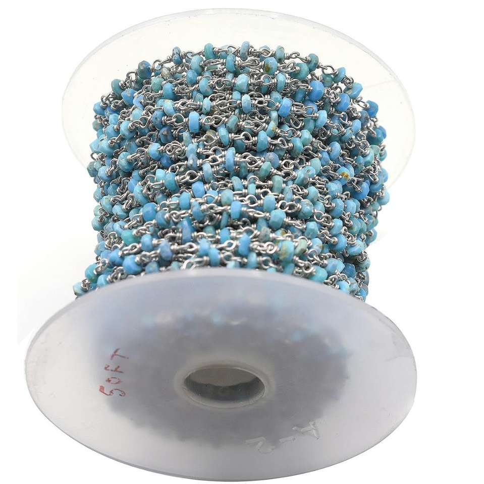 Product Name:Kingman Block Turquoise Sterling Silver Rosary Wire Wrap Chain