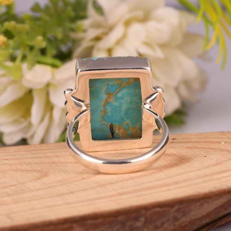 Kingman Turquoise Sterling Silver Artisan Handmade Boho Luxury Statement Ring Chunky Gemstone Wedding Gift for Her