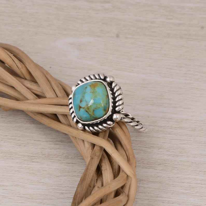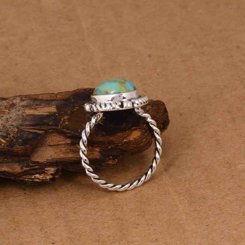 Kingman Turquoise Sterling Silver Ring Twisted Band Boho Jewelry Handmade Gemstone Ring Western Silver Gift for Her