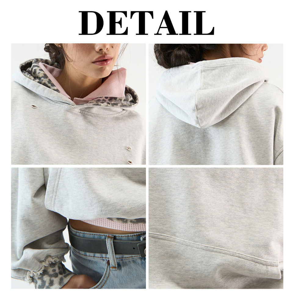 Kingsen 100% Cotton Winter Retro Drop Shoulder Design Unisex Hoodie with Custom Leopard Print Digital Printed