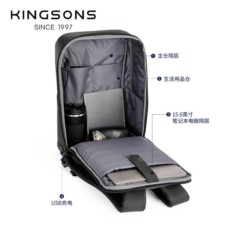 Kingsons Business Backpack 15.6 Inch Laptop Compartment USB Charging Waterproof Anti-Theft Men's Travel Bag