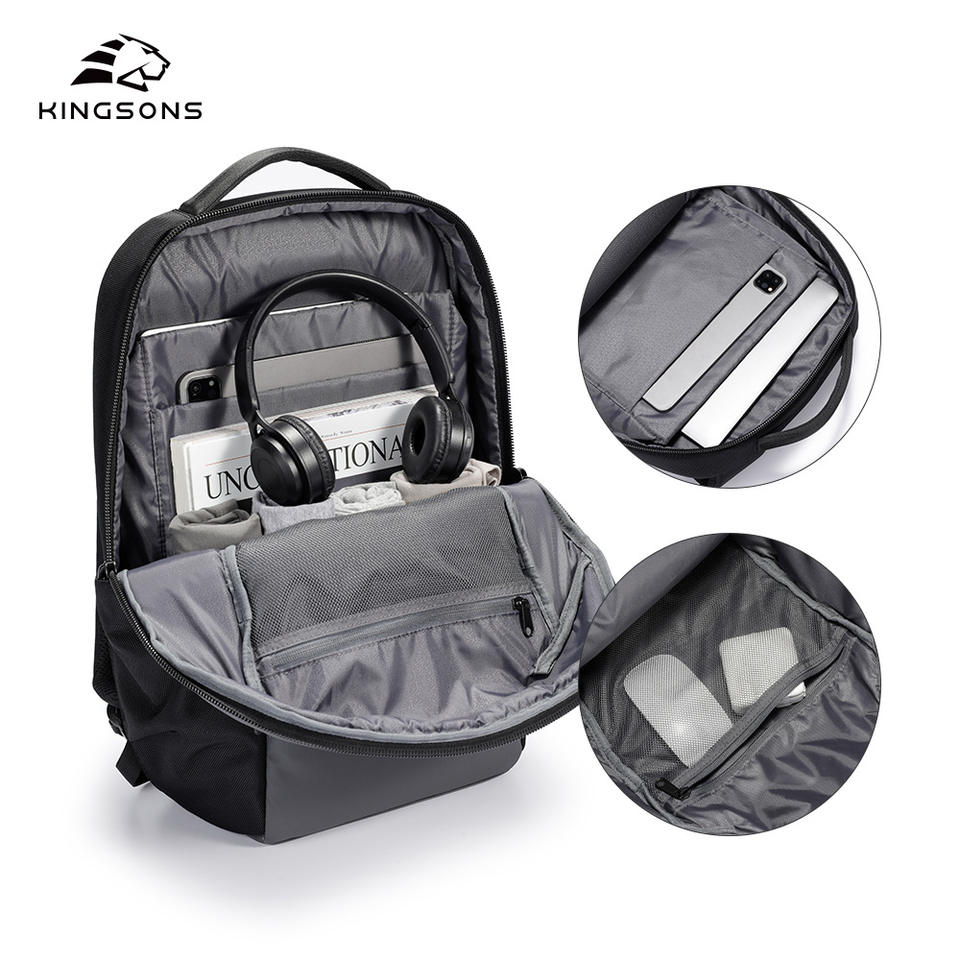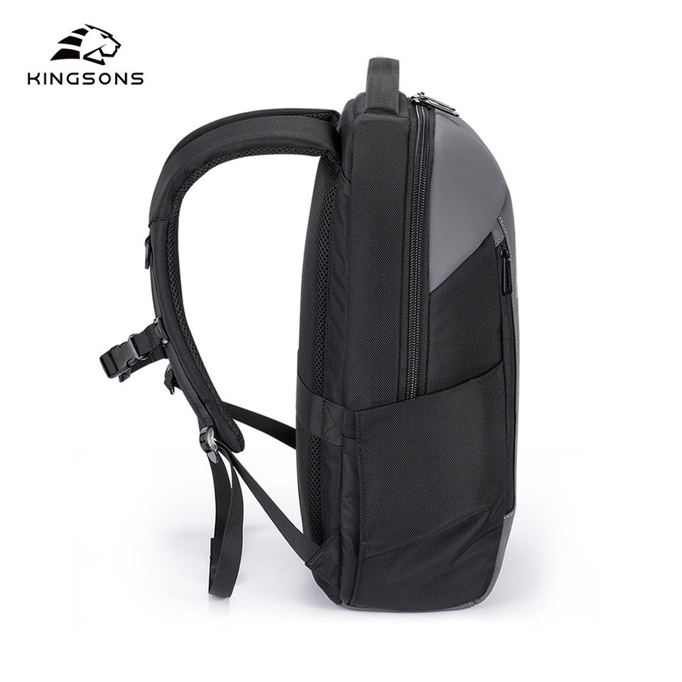 Kingsons Business Backpack 15.6 Inch Water Resistant Laptop Bag Unisex Travel Casual Backpack Solid Color Black And Gray