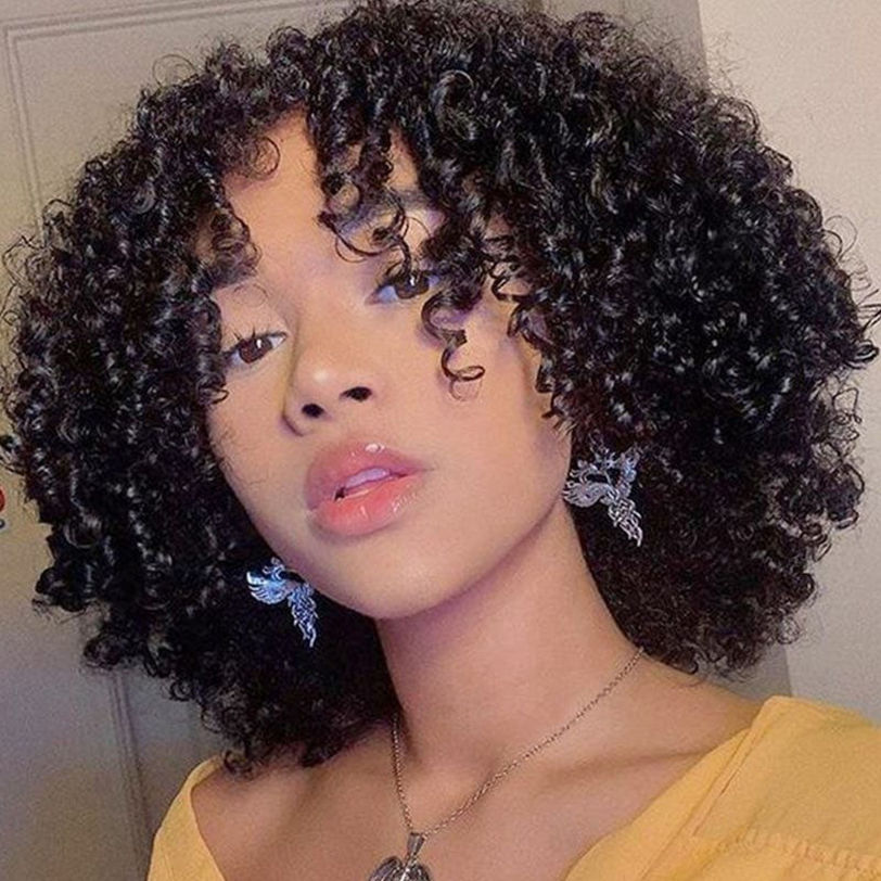 Hair Material:No Tangle No Shedding, Short Fringe Kinky Curly Human Hair Wigs