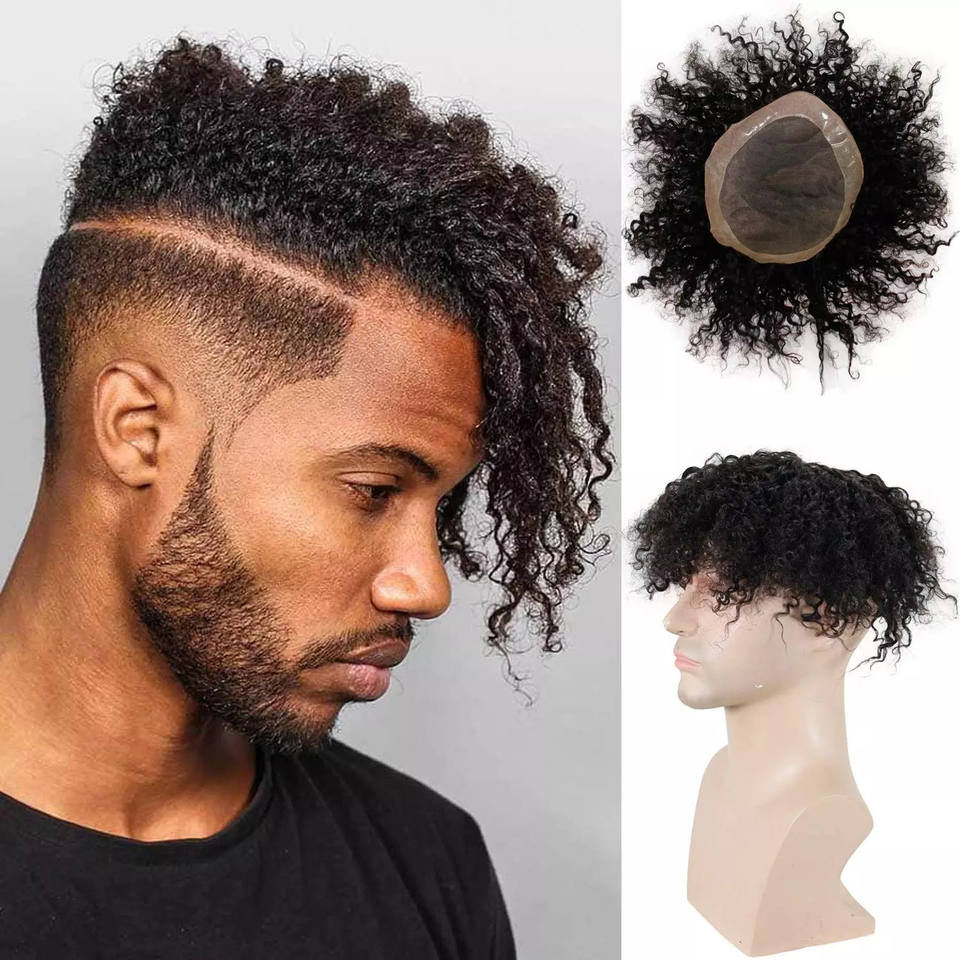 Kinky Curly Men's Toupee for African-American 100%-Rem Human Hair Mono Lace