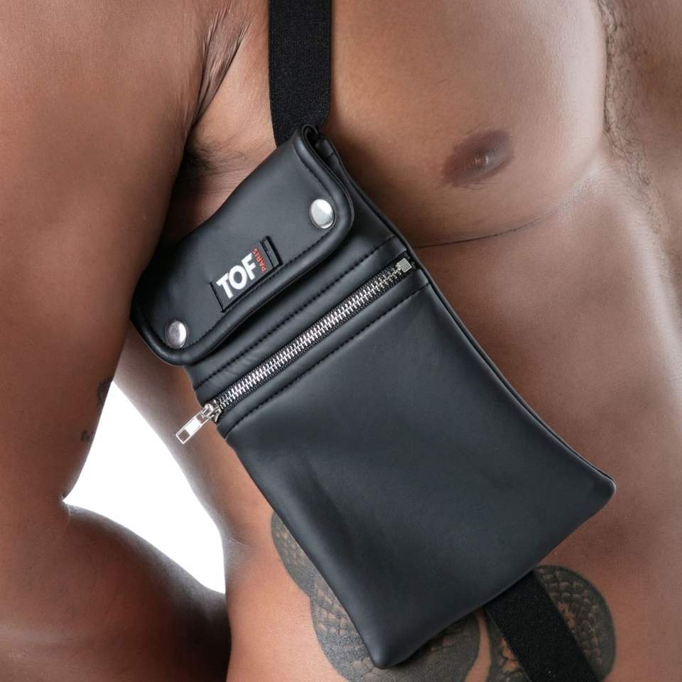 Kinky Zipped Pocket Faux Leather Chest Harness with Zipper Black Mens Sexy Costumes Plus Size Breathable