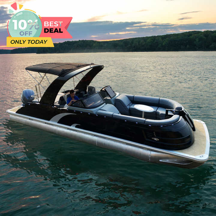 Kinocean Direct Manufacturer 27ft Aluminium Sport Pontoon Boat with Bimini top for Leisure boating & Relaxing on Sale