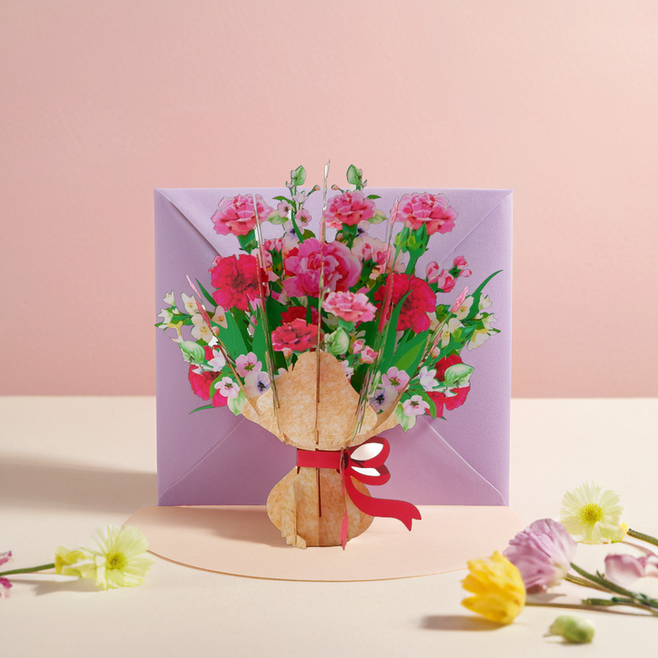 Kirigami Surprise Carnation Flowers Basket 3D Popup Graphic Design for Paper Crafts Bulk Export Greeting Cards Gift Idea