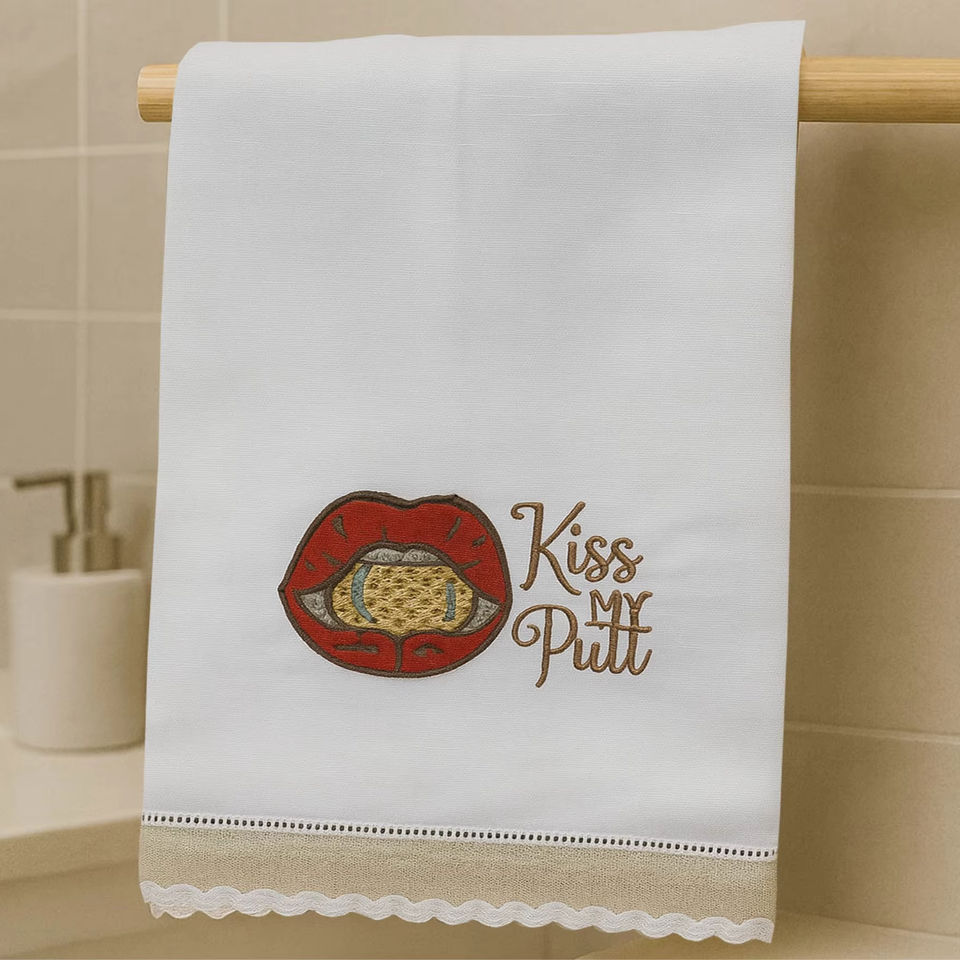 Kiss My Putt Linen Guest Towel, Funny Golf Hand Towel, Absorbent Linen Cotton Bathroom Kitchen Decor