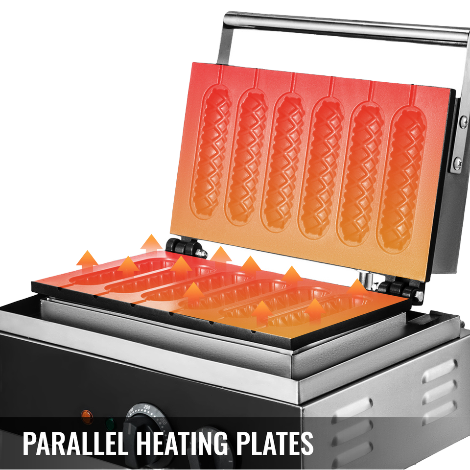 Kitchbox Industrial Commercial Corn Stick Waffle Maker (6 Pieces) Stainless Steel Non-Stick Coating 1-Watch 5-Minute Timer