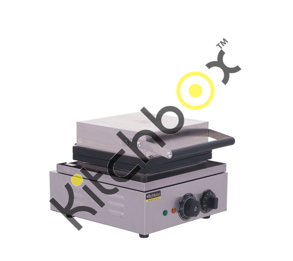Kitchbox Industrial Commercial Stainless Steel Flat Waffle Maker with Non-Stick Coating and 1-5 Min Timer