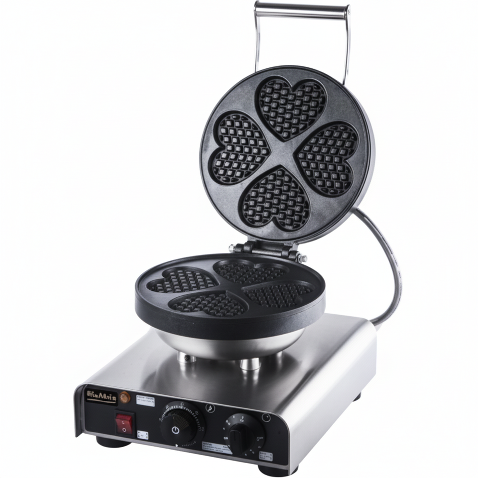 Kitchbox Industrial Commercial Stainless Steel Non-Stick Heart Waffle Maker with 1-Waffle 3-Minute Cooking