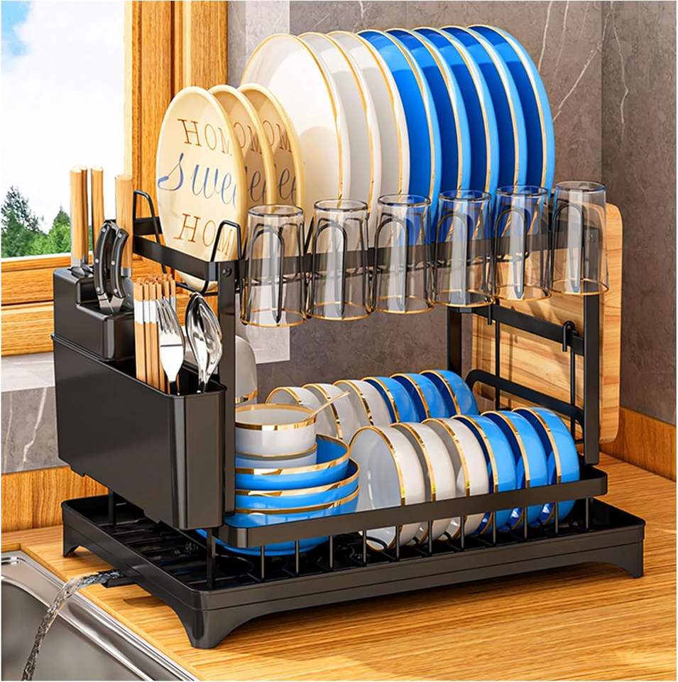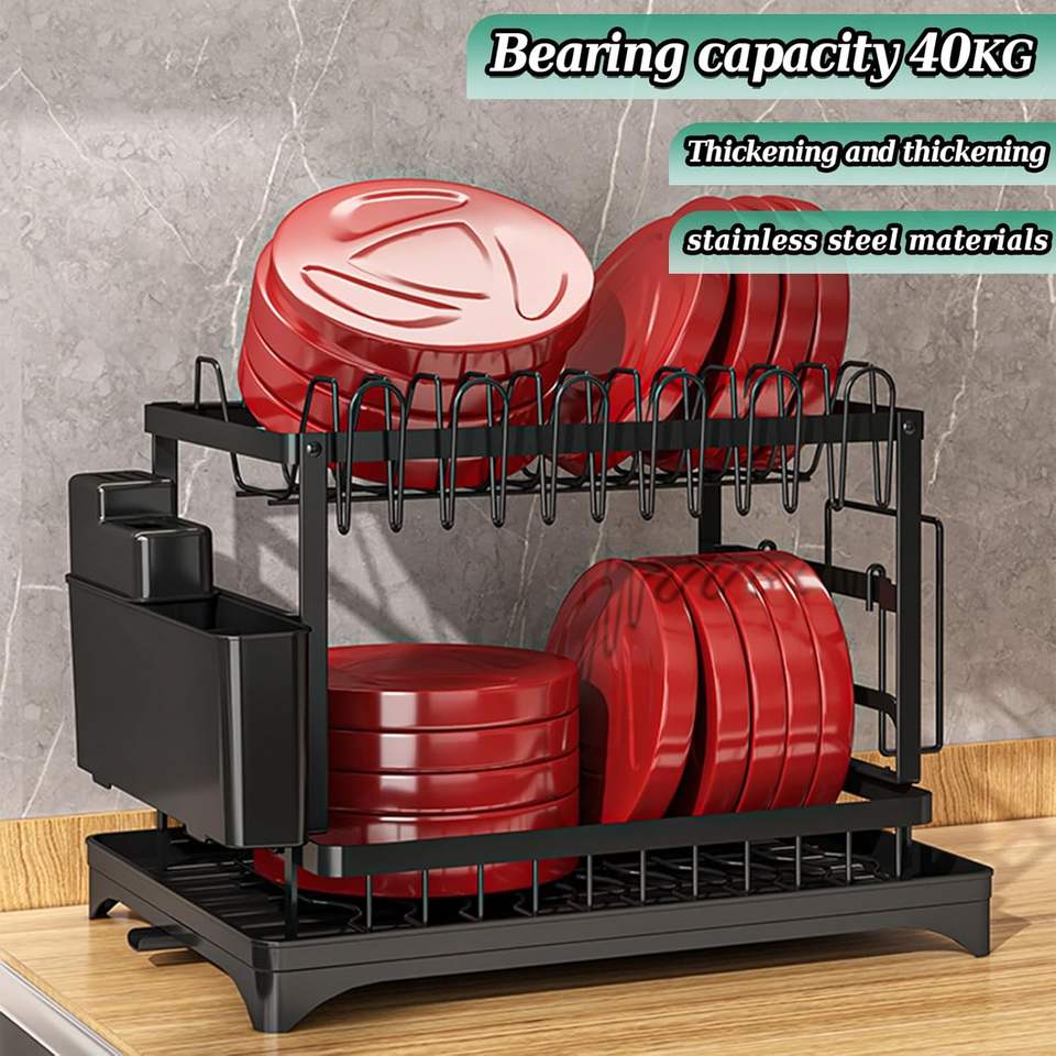 Kitchen 2 Tier Metal Folding Dish Drying Rack Stand Organizer Storage Rack