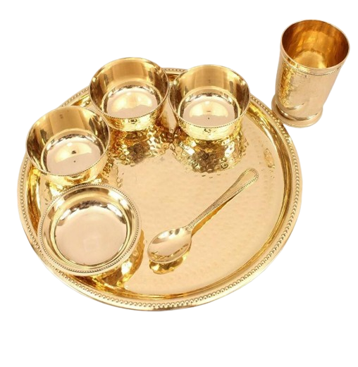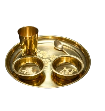 Kitchen Accessories Rounded Shape Handmade Engraved Brass Thali Sets Restaurant Dinnerware Serving Thali Set