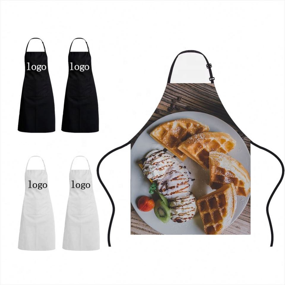 Kitchen Apron Custom logo Waterproof All Over Full Printing Business Advertising Promotional Gift 100% Polyester Kitchen Apron