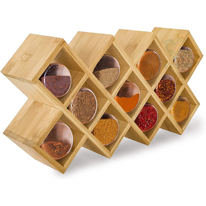 Kitchen Bamboo Spices Organizer Spice Rack Shelf Pack Includes Free Wooden Cutting Board