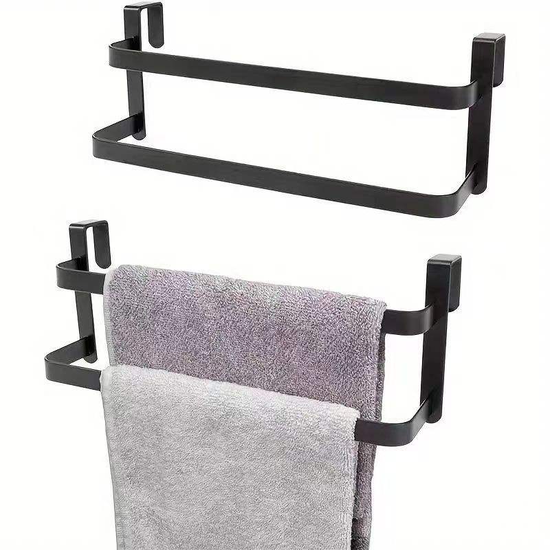 Black double-layer cabinet towel rack