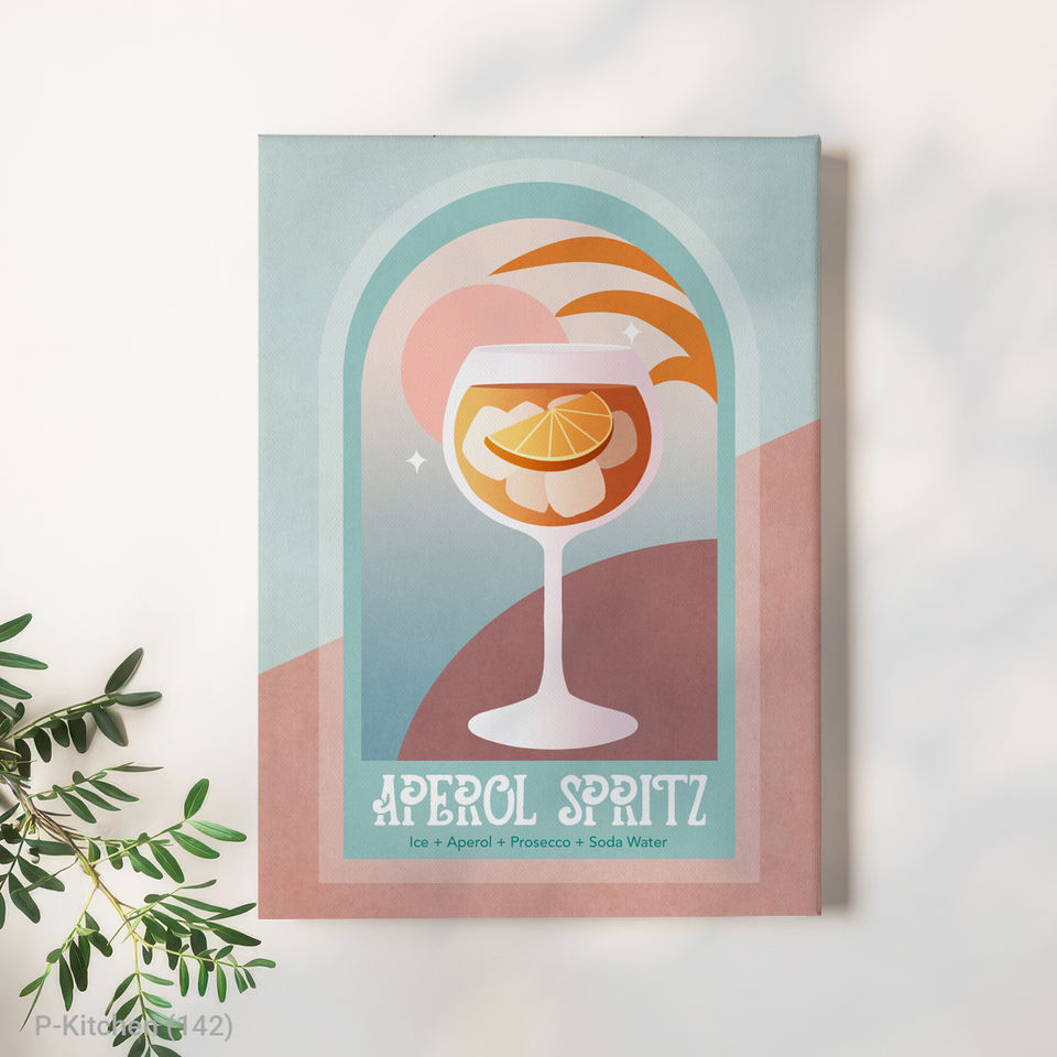 Kitchen Canvas Print, Aperol Spritz Summer Drinks Aesthetic Poster Home Bar, Modern Kitchen Wall Decor