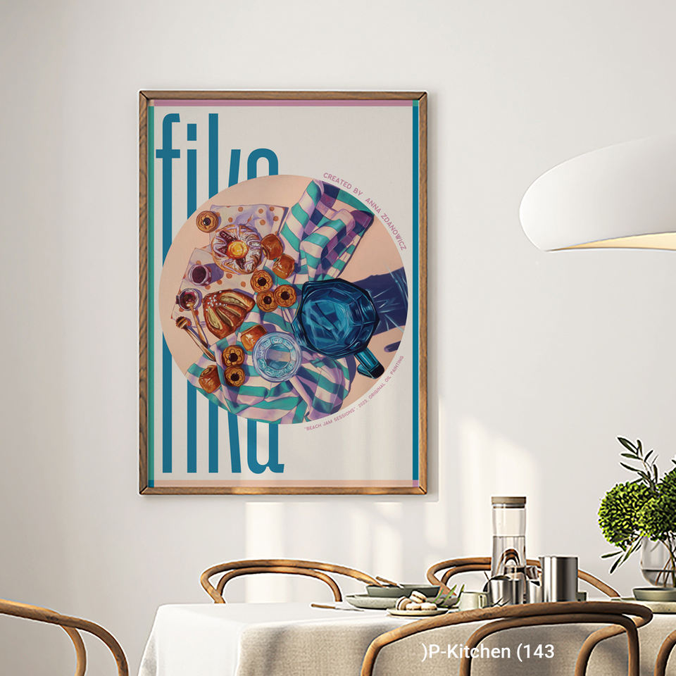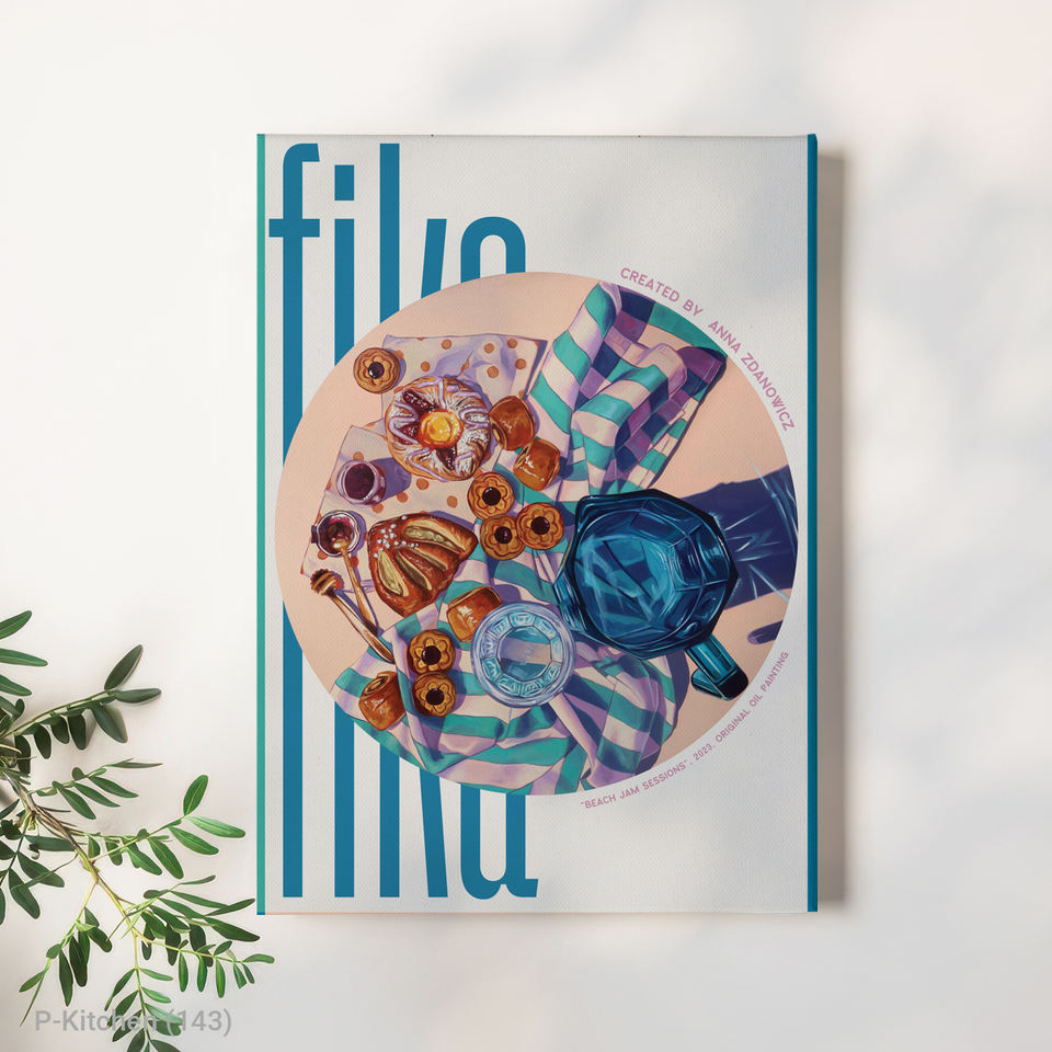 Kitchen Canvas Print, Retro-Modernism Fika Swedish Coffee Break Art Pastel & Teal Palette, Modern Kitchen Wall Decor