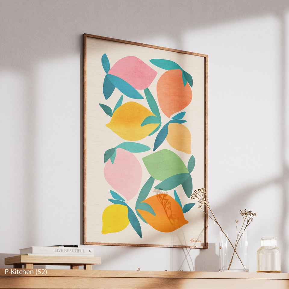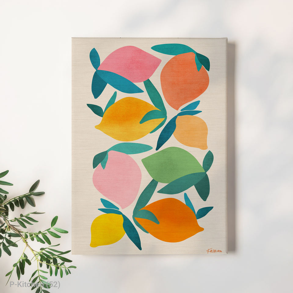 Kitchen Canvas Wall Art, Abstract Fruit Leaf Pattern Illustration Poster, Scandinavian Home Wall Decor