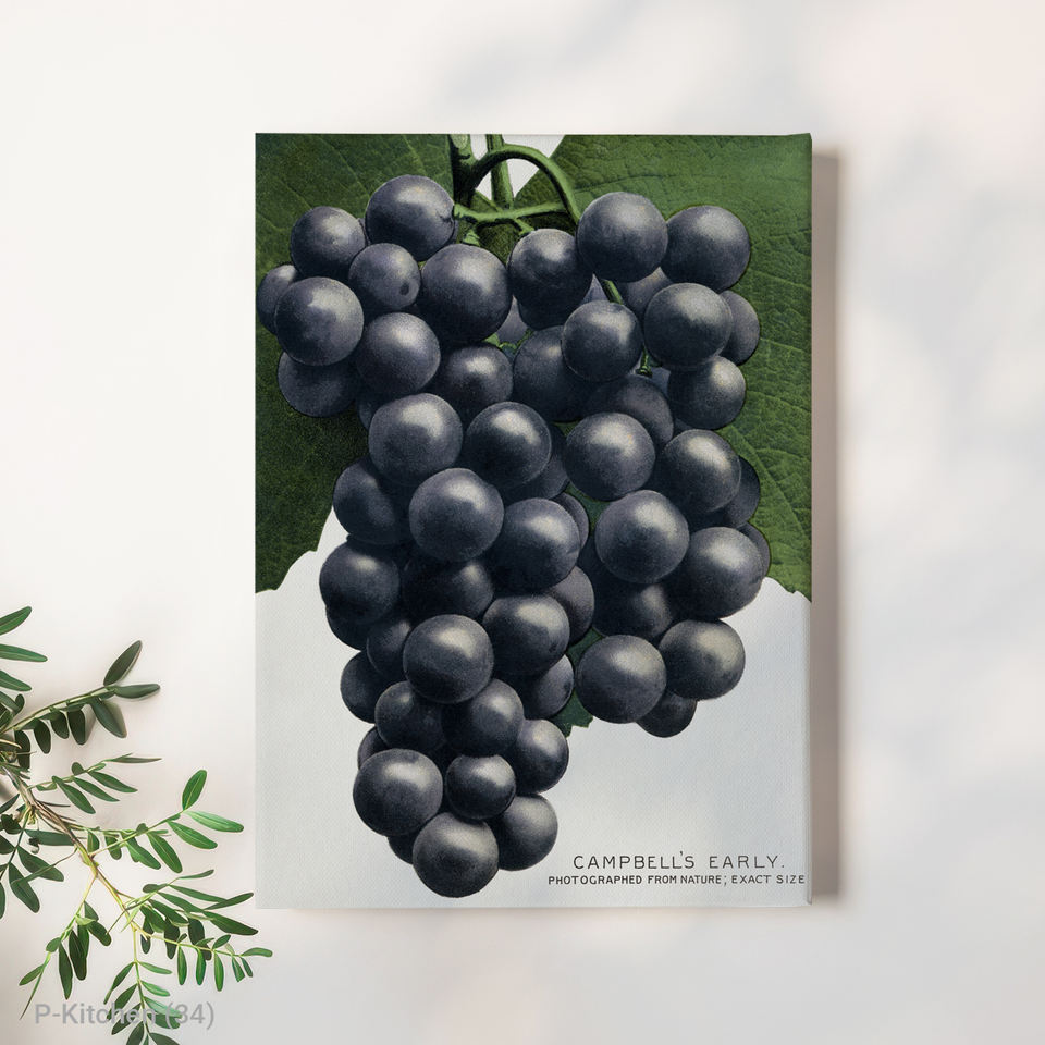 Kitchen Canvas Wall Art, Black Grape Fruit Illustration Poster, Modern Kitchen Wall Decor Artwork