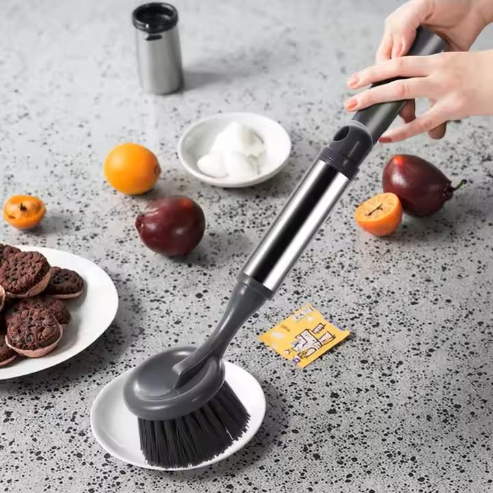 Stainless Steel Handle Dish Brush Easy-Cleaning Kitchen Cleaning Brushes for Pots Pans and Aluminum Sink