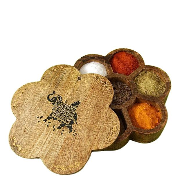 Kitchen Container Round Acacia Wood Salt Box Wooden Spice Box Wooden Spice Jar Round Mango Seasoning Boxes Set With Lid