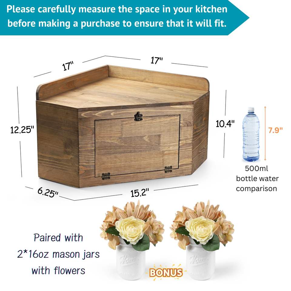 Product Name:Kitchen Corner Wooden Bread Box Farmhouse Countertop Bread Storage Bin