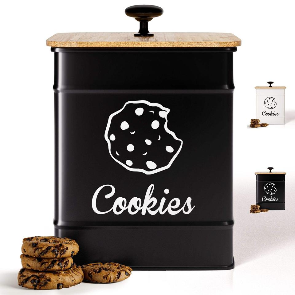 Kitchen Counter Decorative Metal Storage Box Cookie Jar with Airtight Bamboo Lid Party-Ready Large Capacity