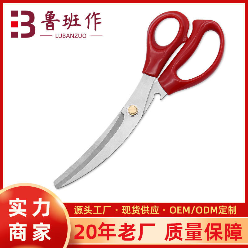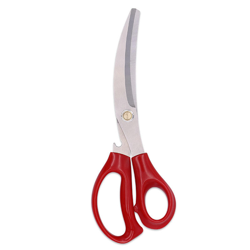 Kitchen Curved Scissors 8 In Stainless Steel Red Handle For Food Cutting And Barbecue Use
