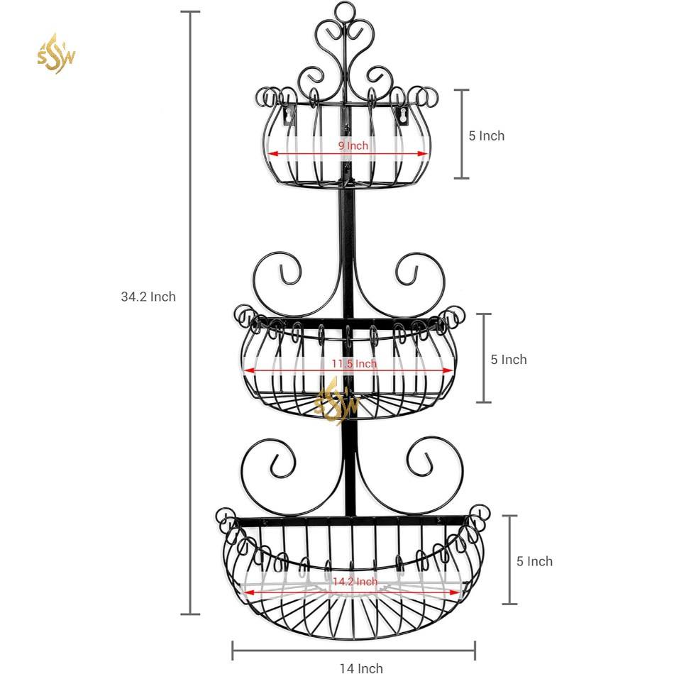 Kitchen Decor Fruits and Spices Jar Racks and Shelf 3 Layer Premium Quality Large Size Black Color Iron Material Home Spice Rack