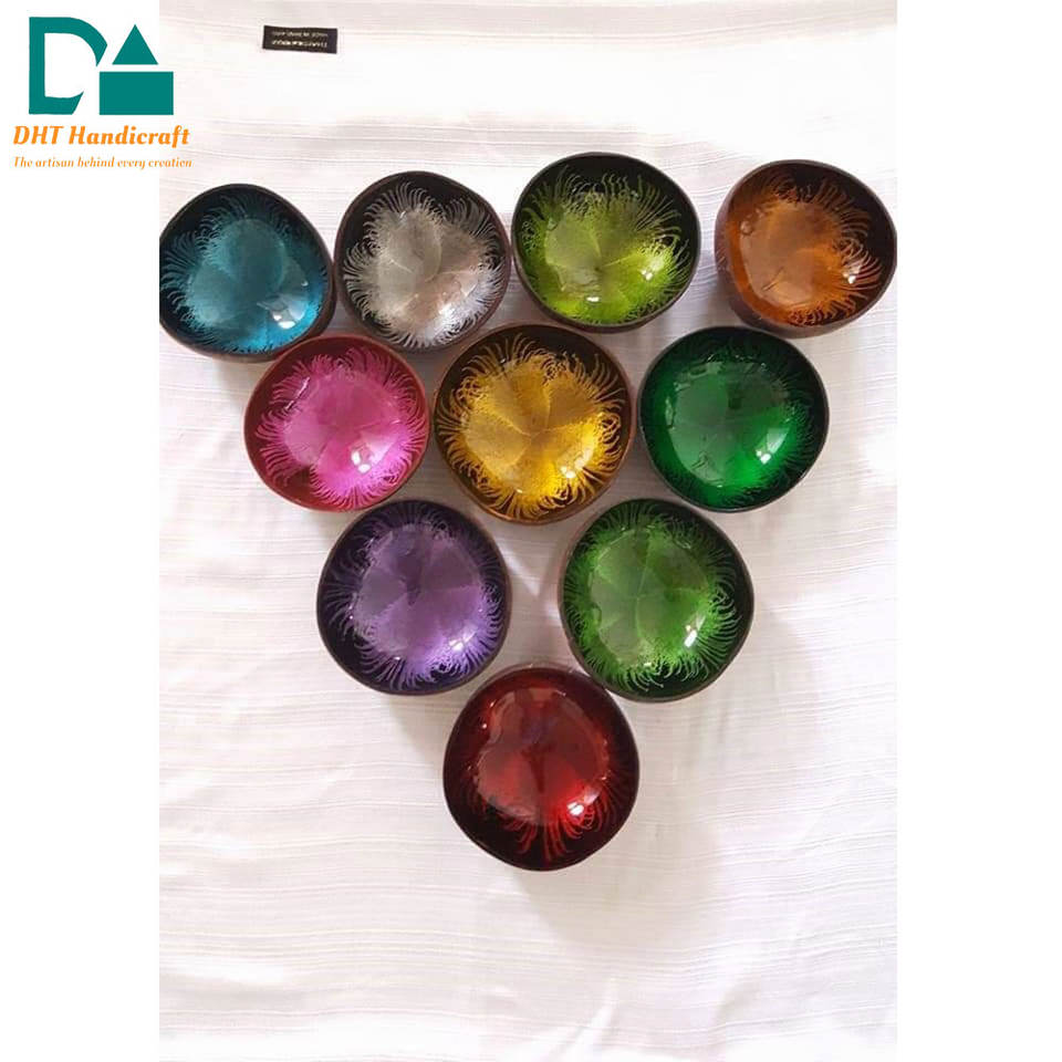 Kitchen Decoration Coconut Shell Material Crackle Glaze Technique Art Work Design Lacquer Coconut Bowl for Gift Store